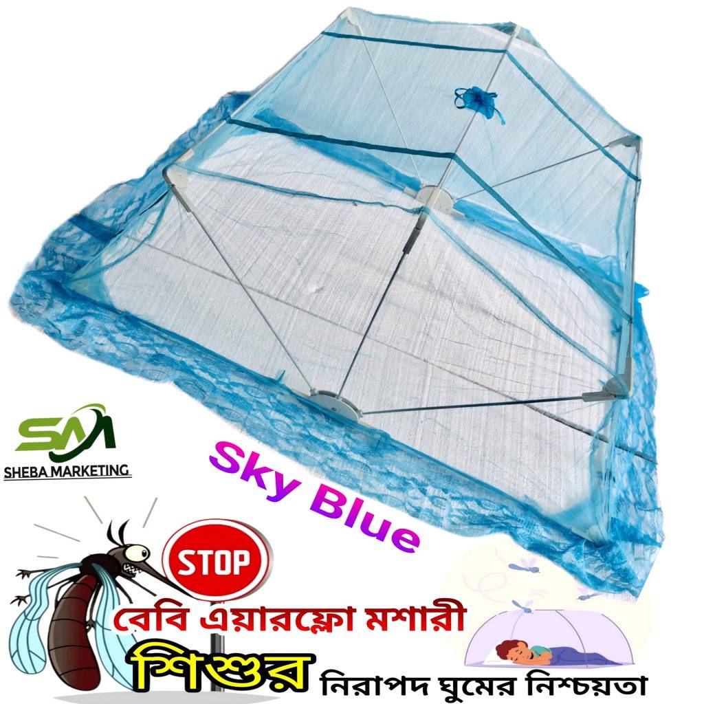 শিশুর মশারি ভাঁজ করা নেট-স্ট্যান্ডার্ড রঙ (থাই মানের) Sky Blue – mosquito net